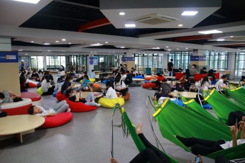 Khu tự học “sang chảnh”, rộng rãi được thiết kế và sắp xếp đẹp mắt với nhiều màu sắc trẻ trung, tạo cảm giác thoải mái cho sinh viên để học tập ngoài giờ.