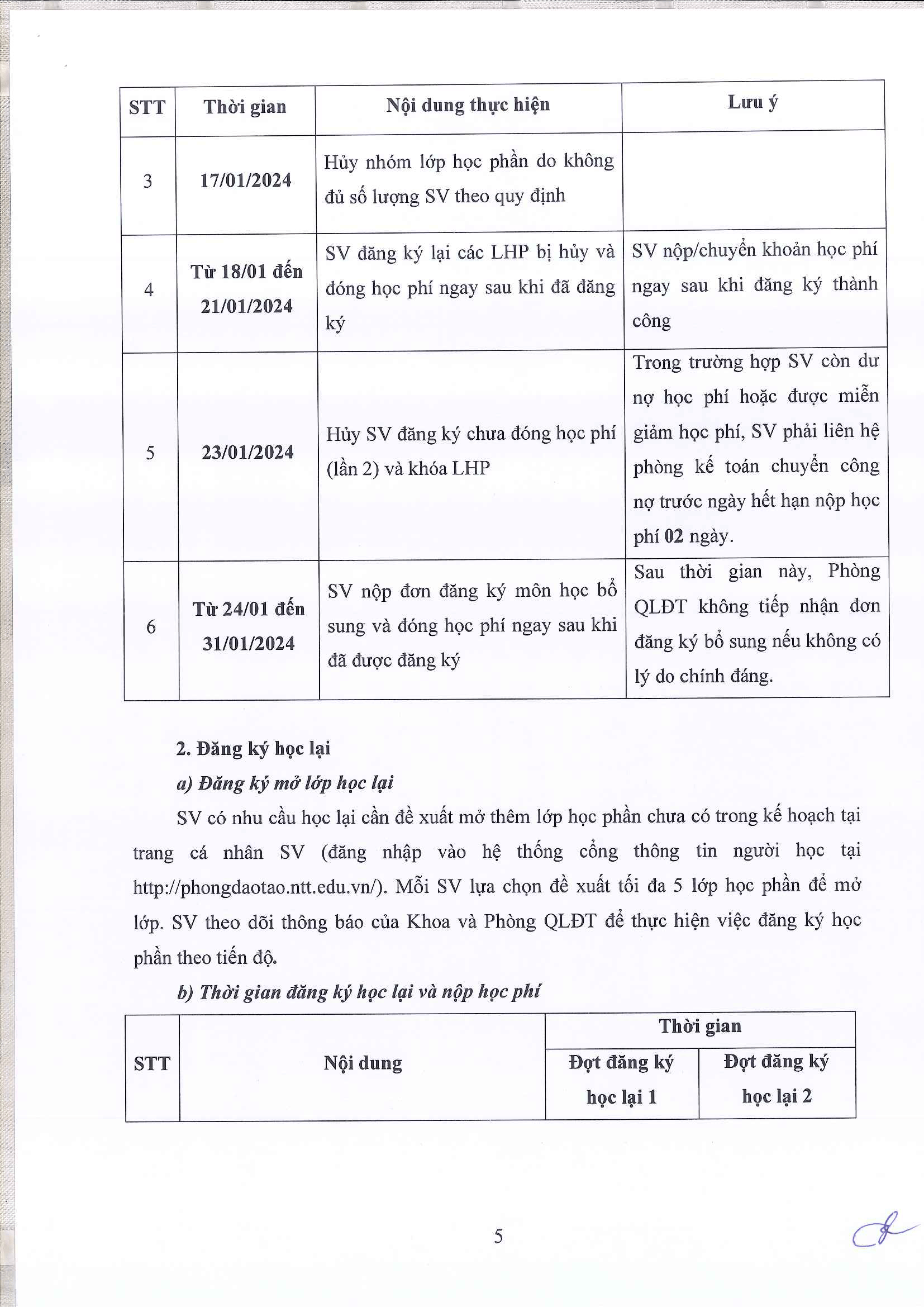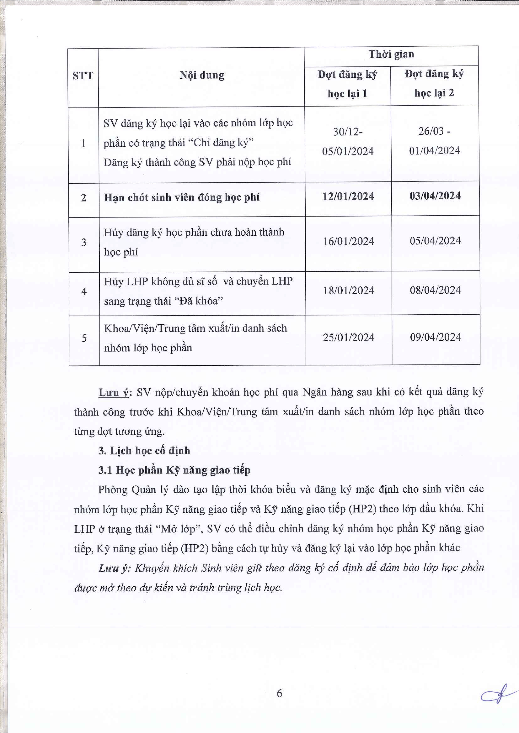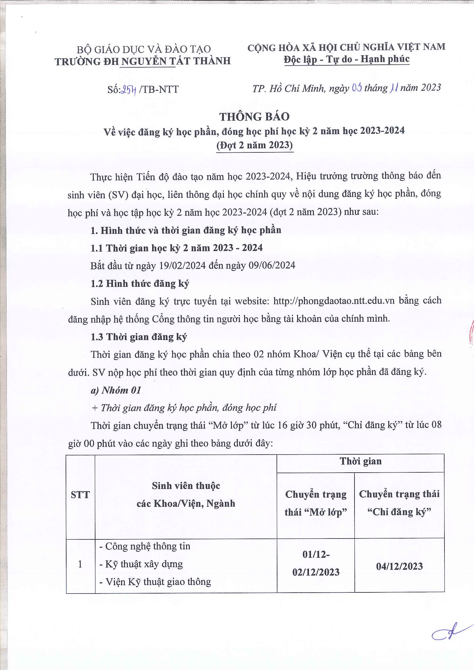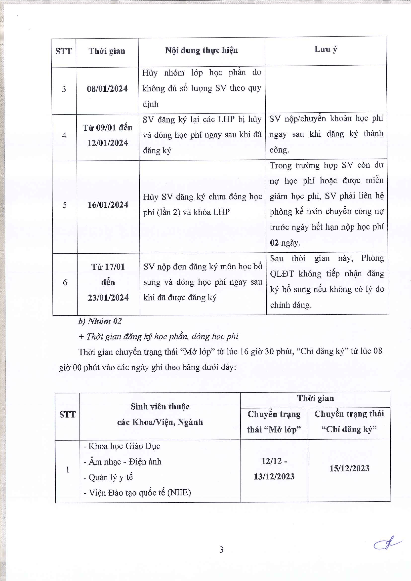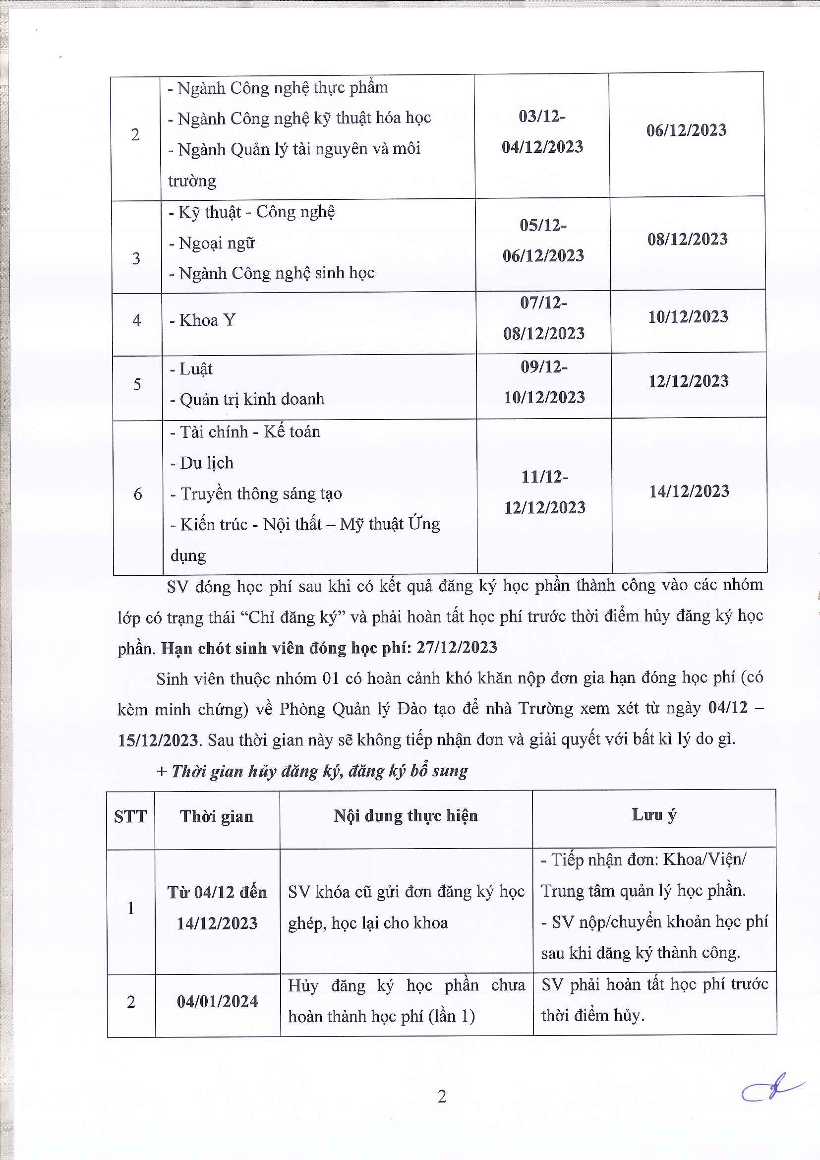 / Thông báo về việc đăng ký học phần, đóng học phí học kỳ 2 năm học 2023 – 2024 (Đợt 2 năm 2023)