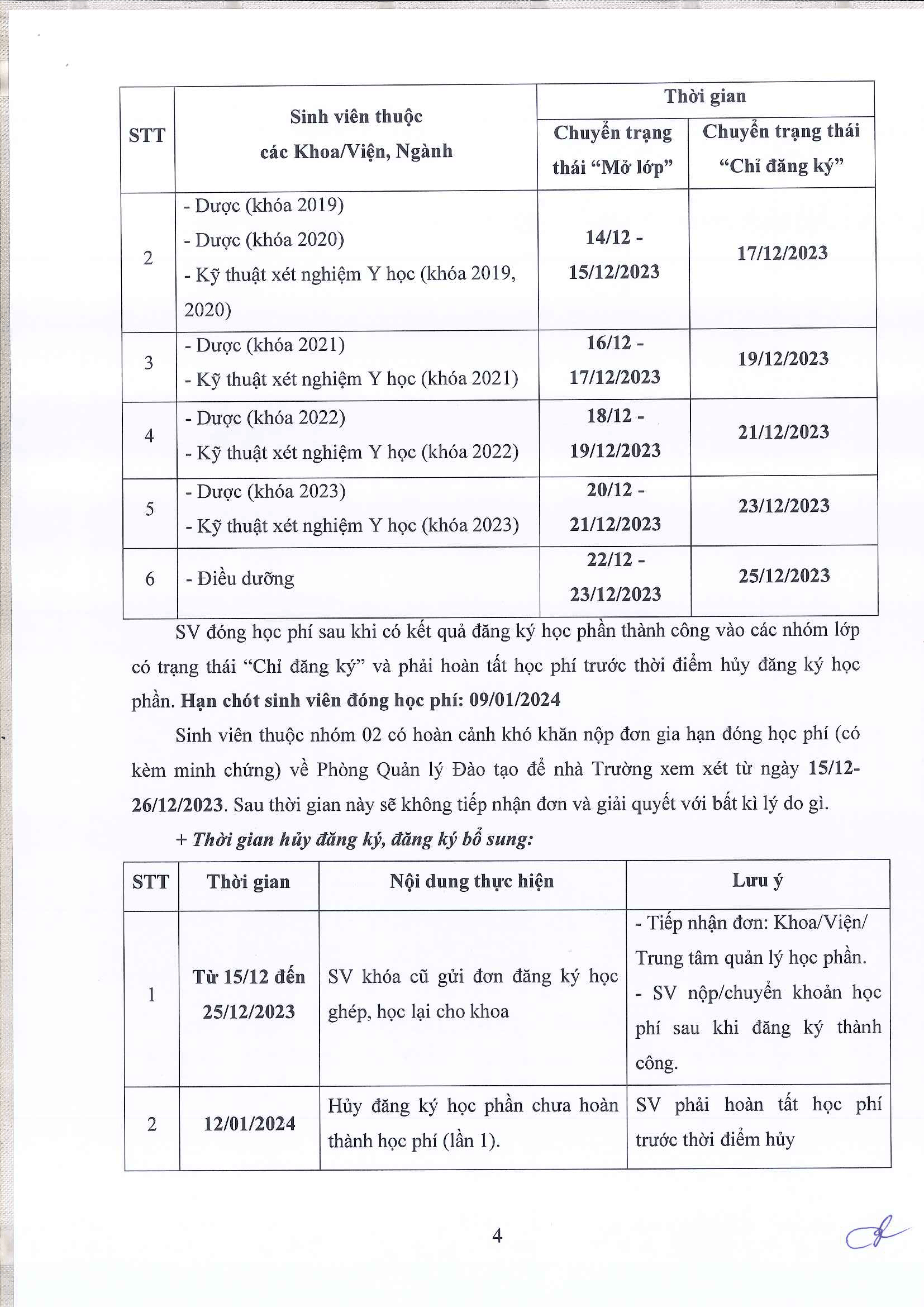Thông báo về việc đăng ký học phần, đóng học phí học kỳ 2 năm học 2023 – 2024 (Đợt 2 năm 2023)